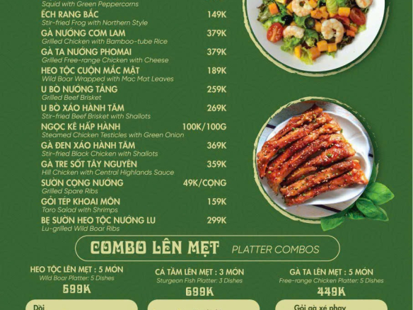 – GÀ VƯỜN NƯỚNG CƠM LAM , HEO MẸC, MỰC NHẢY HÀ TĨNH, LẨU BÒ ATISO