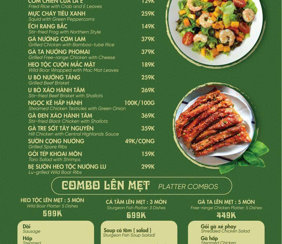 PHỤC VỤ CẢ SÁNG, TRƯA, TỐI – Các món đặc sản núi rừng TÂY NGUYÊN tại Đà Lạt.