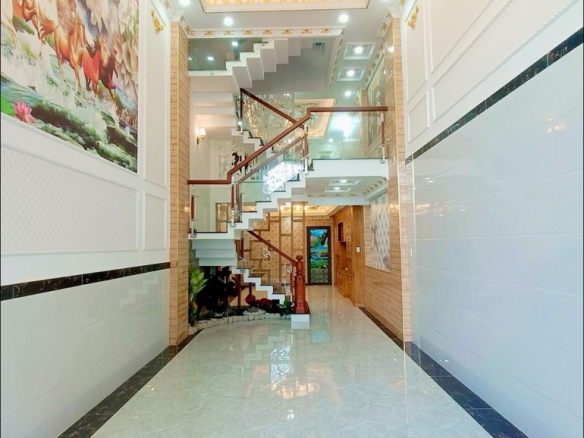 – Kết cấu: 1 trệt 1 lửng 2 lầu & sân thượng trước + sau, mái bê tông. Gồm 4PN khép kín, 5WC, phòng thờ, bếp, phòng khách rộng rãi xe hơi vào nhà.,