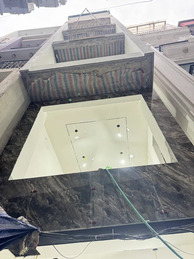 • Tầng 1: Phòng khách rộng, sàn đá – gara/để xe