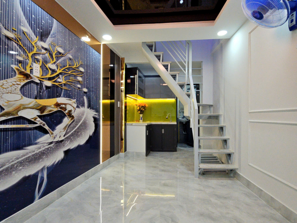 Nhà Xe hơi ngũ trong nhà DT 4x 24 nở hậu 5.1m dưới 65 triệu m Xóm Chiếu Q4