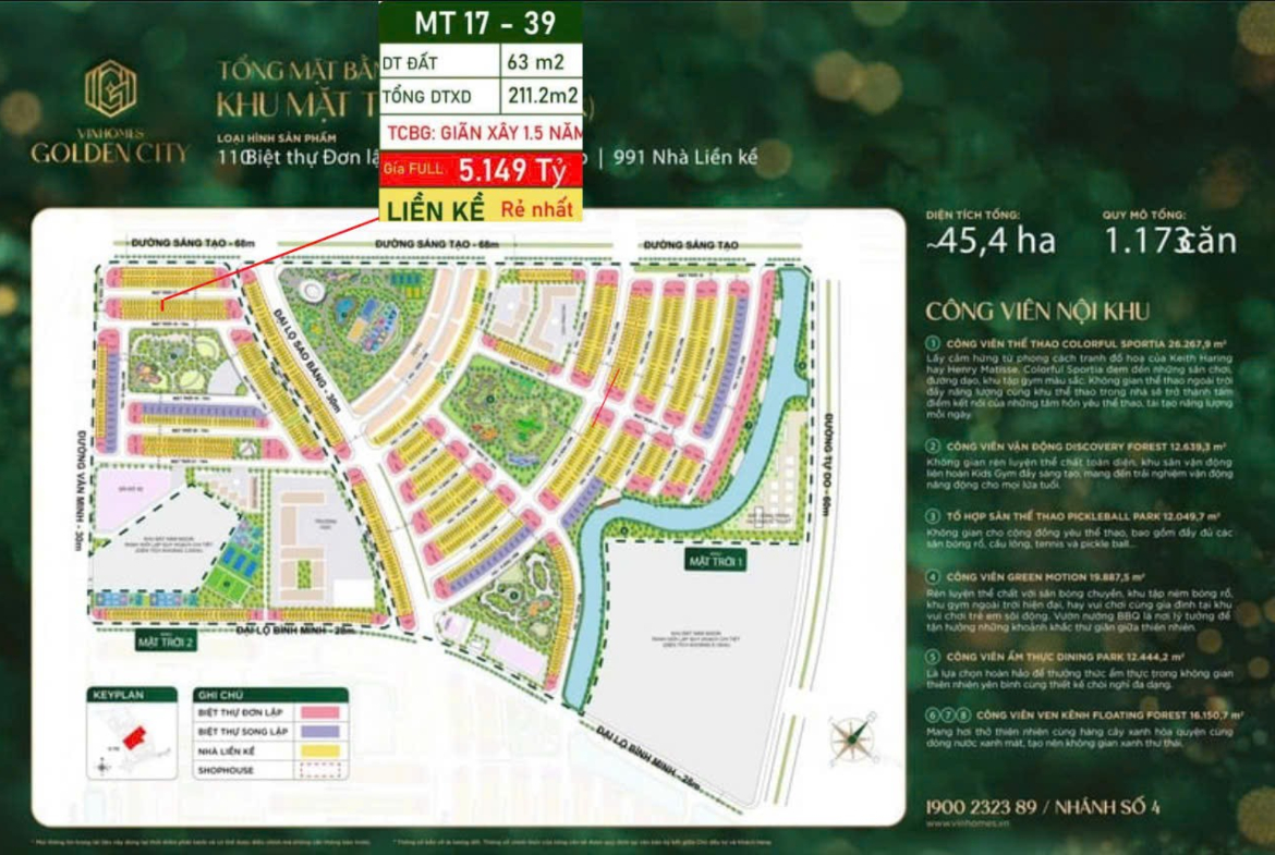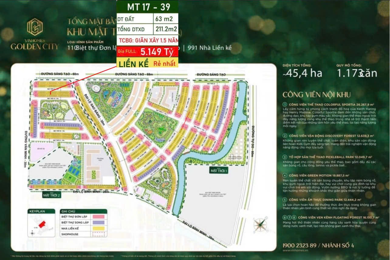 *** Vị trí: MT 17 – 39, ngay mặt đường 68m “Sáng Tạo” – trung tâm phân khu đẹp nhất dự án!