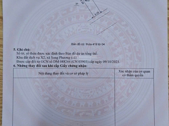 PHÂN LÔ VỈA HÈ Song Phương 6,2 tỷ, 48m2, sẵn sổ, cạnh ĐL THĂNG LONG, GA METRO