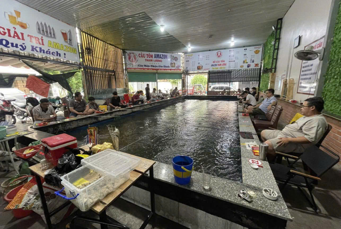 - Diện tích là 250 m2 ( 14m x 18m ) với hồ câu tôm có thể phục vụ được 20 cần thủ câu tôm.