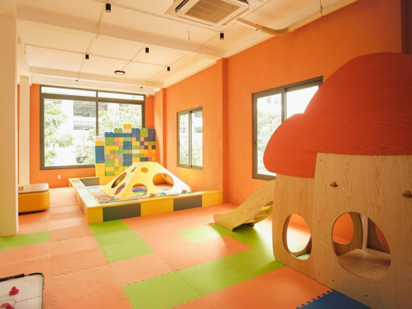 + Hệ thống máy lạnh, Khu vui chơi dành cho trẻ embên ngoài trời, khu vui chơi tầng 1, Cây xanh, bàn ghế nội thất, quầy bếp, quầy bar…. có bếp kết hợp kinh doanh kết hợp ăn uống.