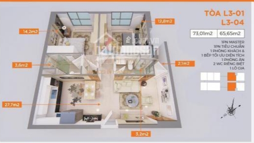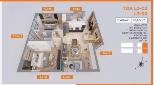 Căn 63m2 tòa L4 tầng 3 hướng TB giá 3 tỷ