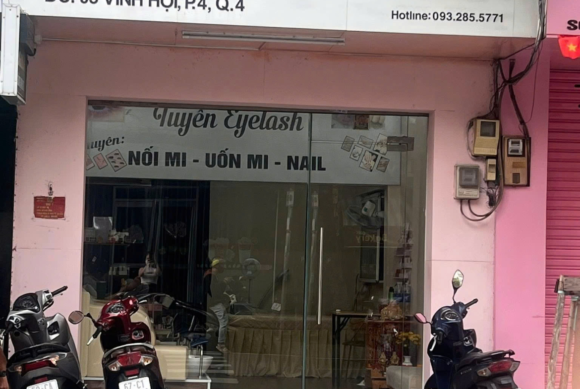 Sang tiệm nail -nối mi tại 03 vĩnh hội quận 4 nằm ngay mặt tiền đường
