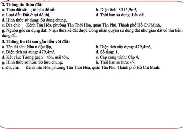 | Giá chỉ 72 triệu/m² – quá thấp cho vị trí trung tâm Tân Phú! | |||||||