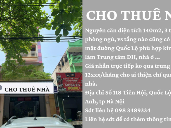 SIÊU HÓT – CHÍNH CHỦ CHO THUÊ NHÀ NGUYÊN CĂN MẶT ĐƯỜNG TẠI SỐ 118 TIÊN HỘI, ĐÔNG ANH, HÀ NỘI – 12TR/THÁNG