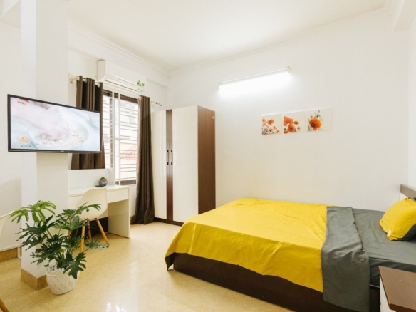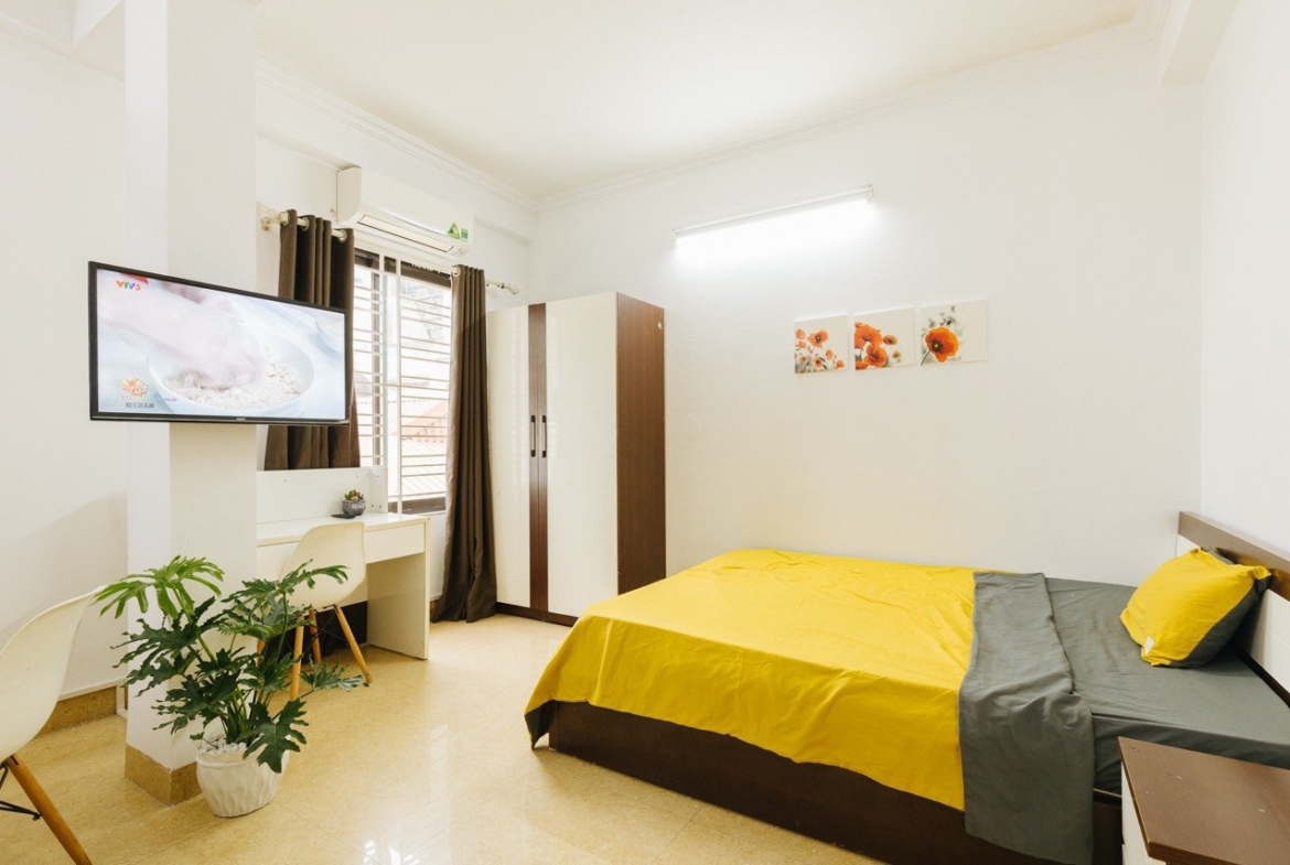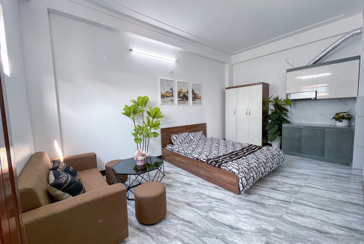 + Tòa nhà căn hộ được đầu tư thiết kế thi công chắc chắn, với tư duy thiết kế hướng đội tượng trẻ và đón sáng, nắng, gió vào phòng khiến không gian sống tiện nghi, dễ chịu. Tất cả các phòng đều full trang thiết bị nội thất bền bỉ & hiện đại từ giường tủ, máy giặt, tủ lạnh, bếp … WC đẹp, Wifi, thang máy nhập khẩu, cửa vân tay…