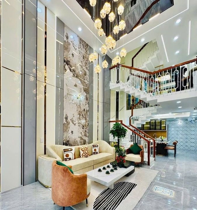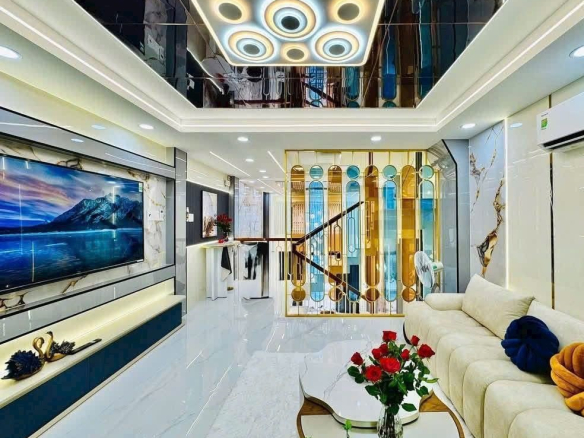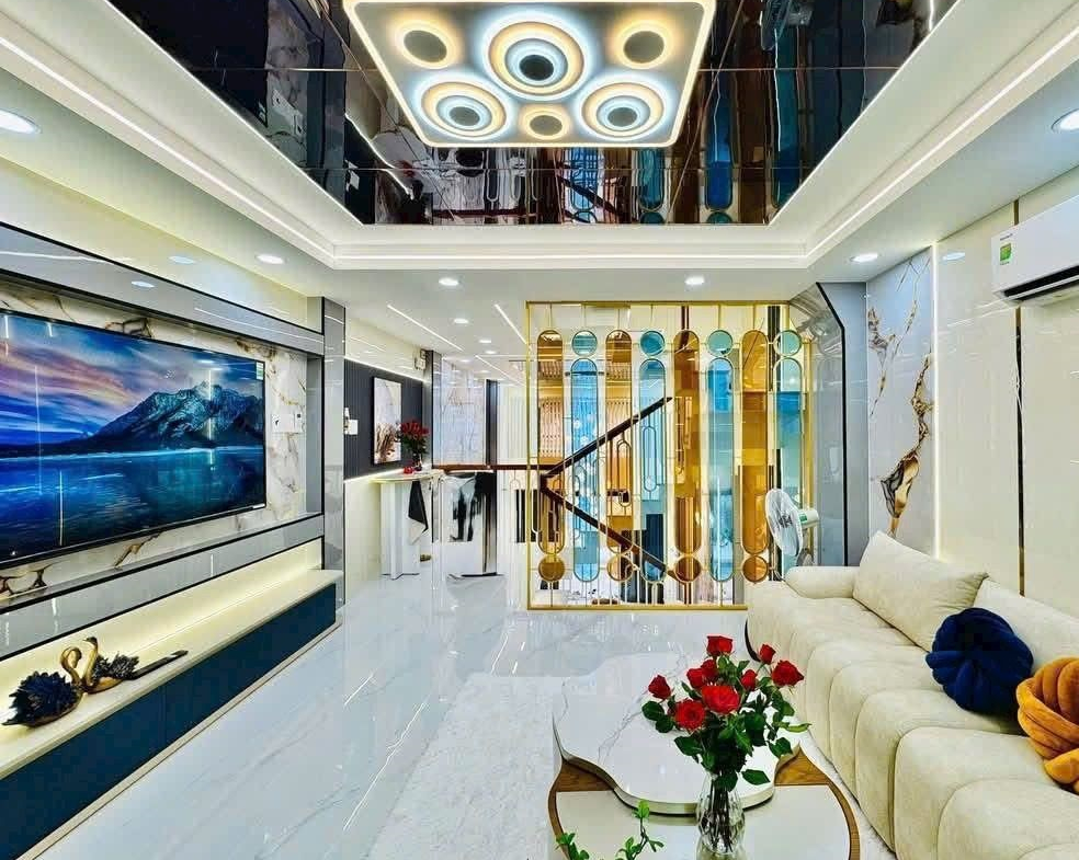 – 1 trệt, 1 lửng, 3 lầu , gồm Sân để xe , PK ,bếp , 4PN lớn , 5WC ,sân thượng , Nội thất đẹp sang xịn mịn cao cấp Full Nhà