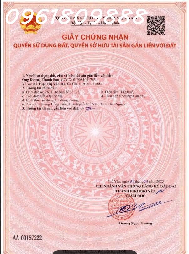 – Đất nền đẹp trong khu dân cư Hồng Tiến, Phổ Yên, Thái Nguyên. Phù hợp cho kinh doanh hoặc đầu tư.