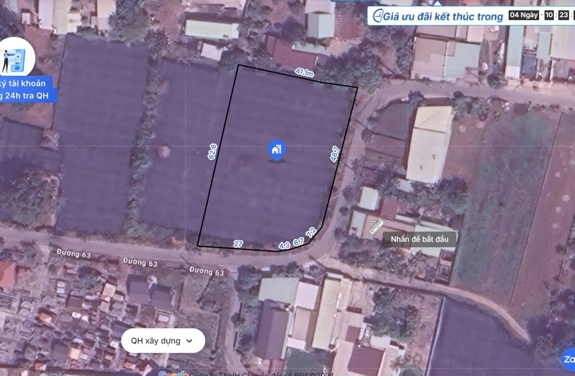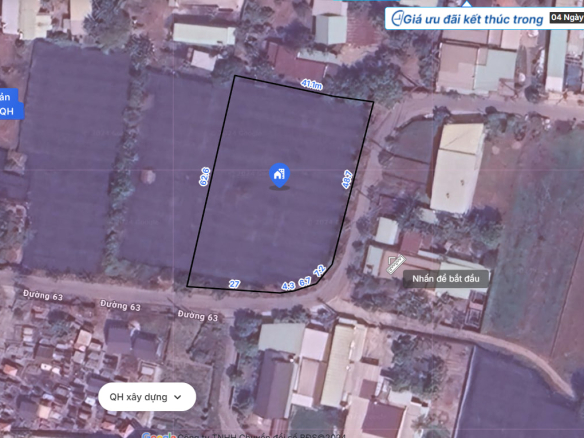 Diện tích: 2.364m² (41m x 62m), bao gồm 300m² đất thổ cư.