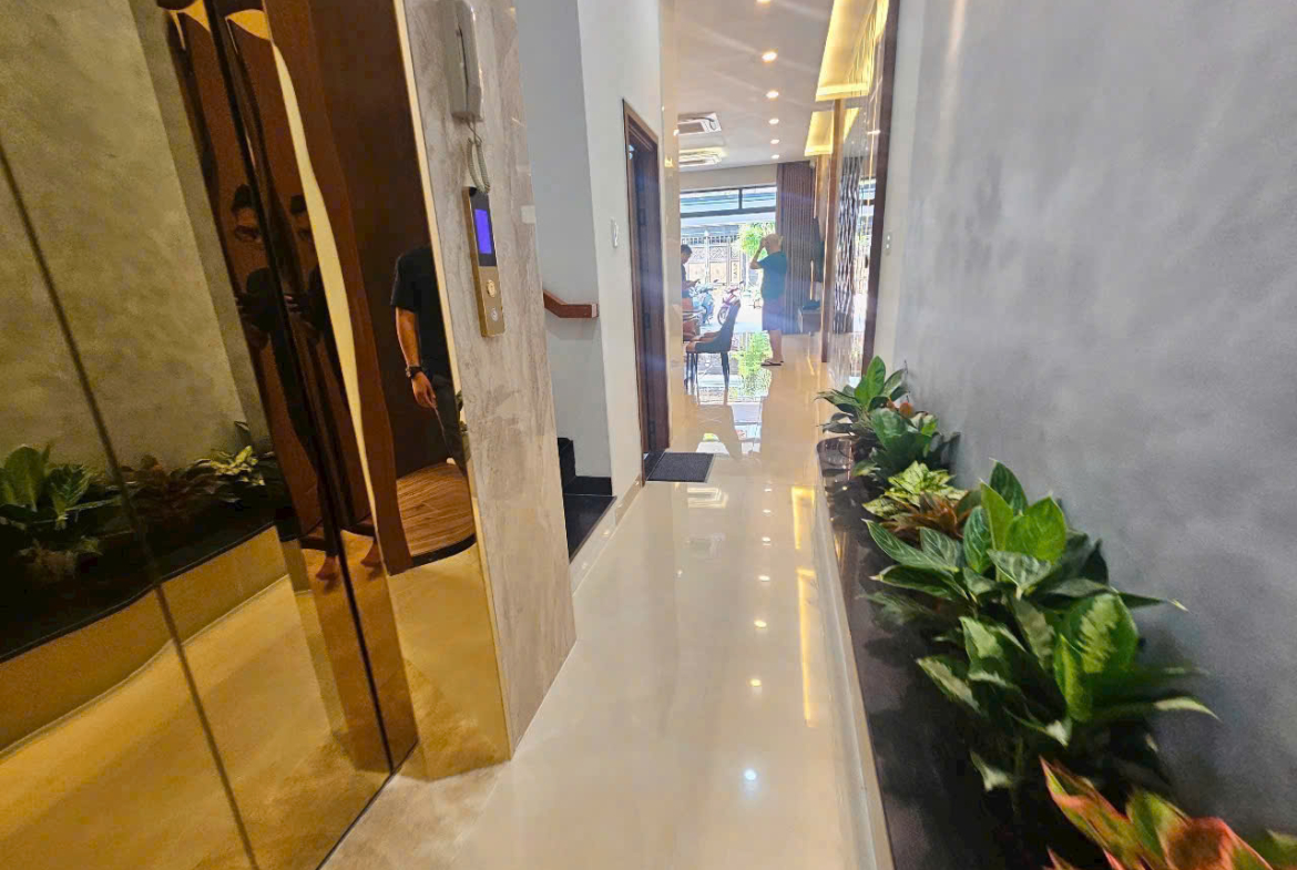 DT: 5x26m – 1 trệt 3 lầu đúc 4 tấm, thang máy 450kg lên sân thượng.