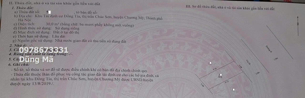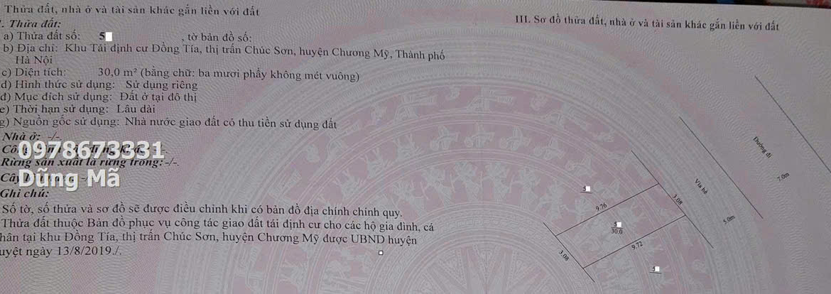Bất Động Sản Chương Mỹ mở bán lô đất thuộc khu đất tái định cư Đồng Tía cực đẹp