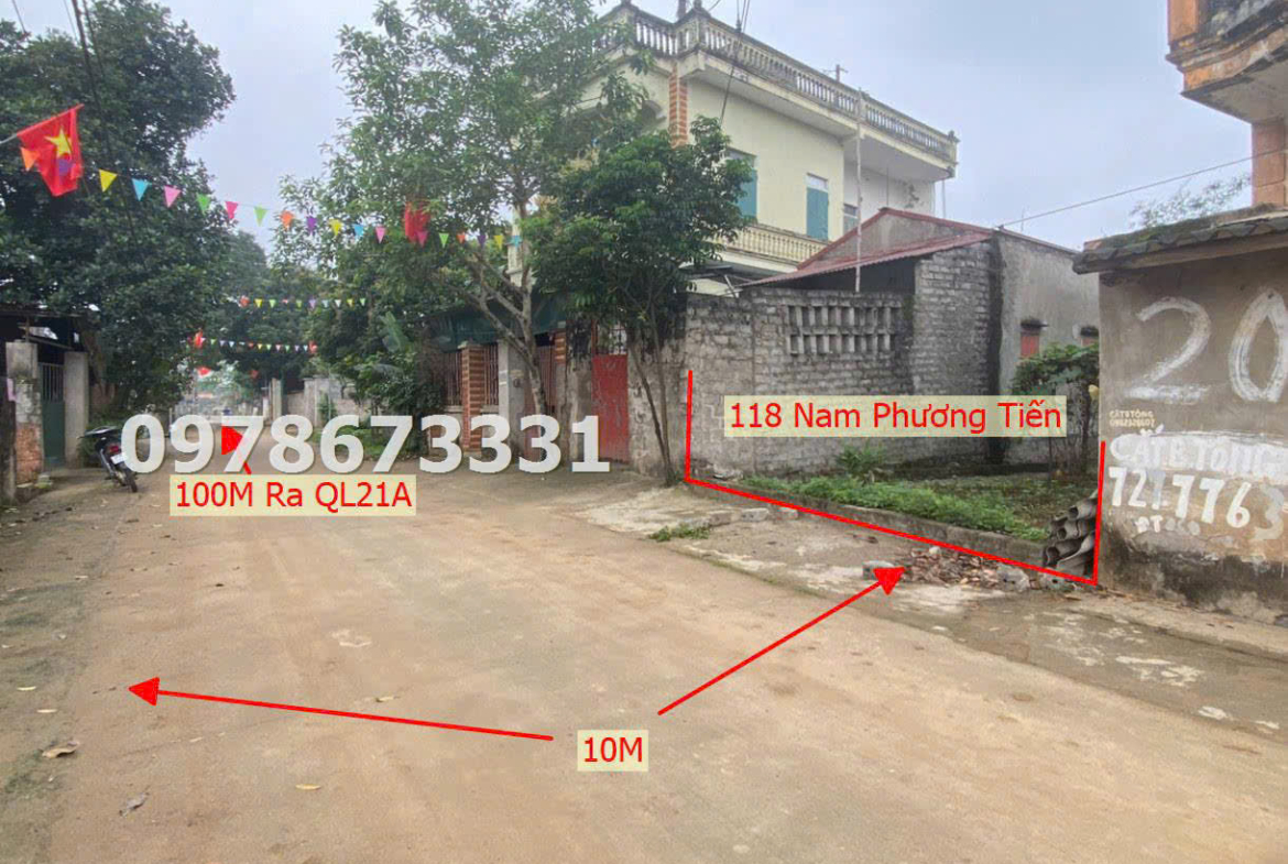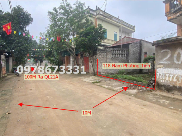 -Diện tích : 118m2 -Mặt tiền = mặt hậu = 5m -Đường trước đất rộng 10m ô tô tránh nhau -Sát trục chính liên xã Tiện ích : -Nằm sát QL21A kinh doanh qua lại tấp nập -Cách Chợ Cá 200m -Cách khối cơ quan khu hành chính xã chỉ 300m