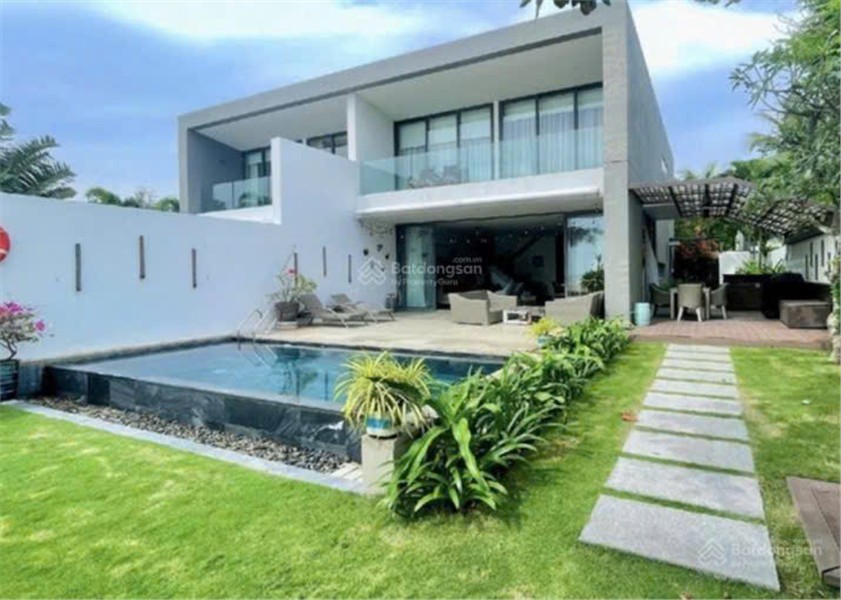 Kết cấu: 1 trệt 1 lầu, gồm 4 phòng ngủ, 5 phòng tắm, phòng khách, hồ bơi riêng, sân vườn, gara ô tô.