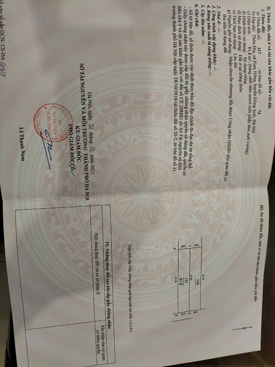 THÔN ĐÌA NAM HỒNG DT 81,8M2