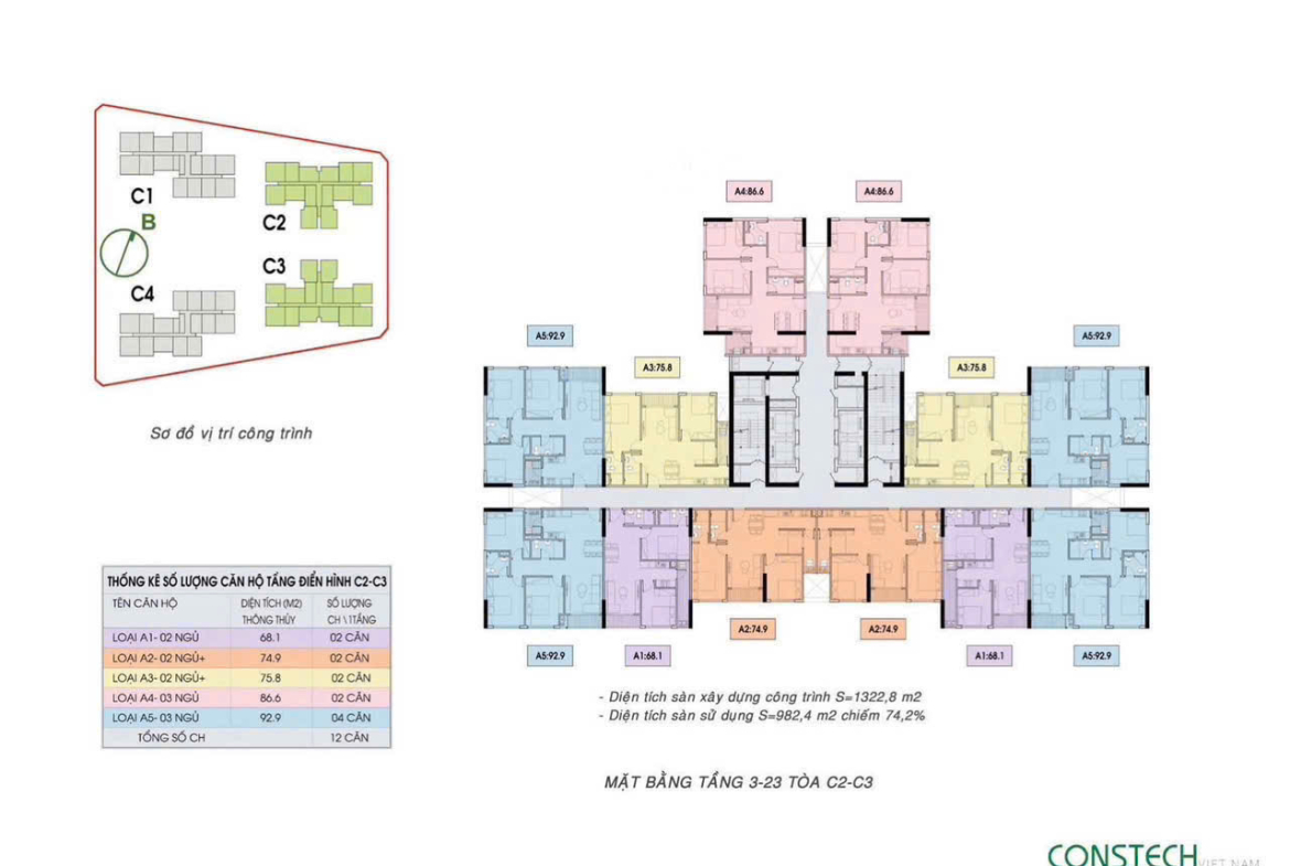 – Quy mô: 4 toà chung cư cao 25 tầng ( ký hiệu C1, C2, C3, C4 )