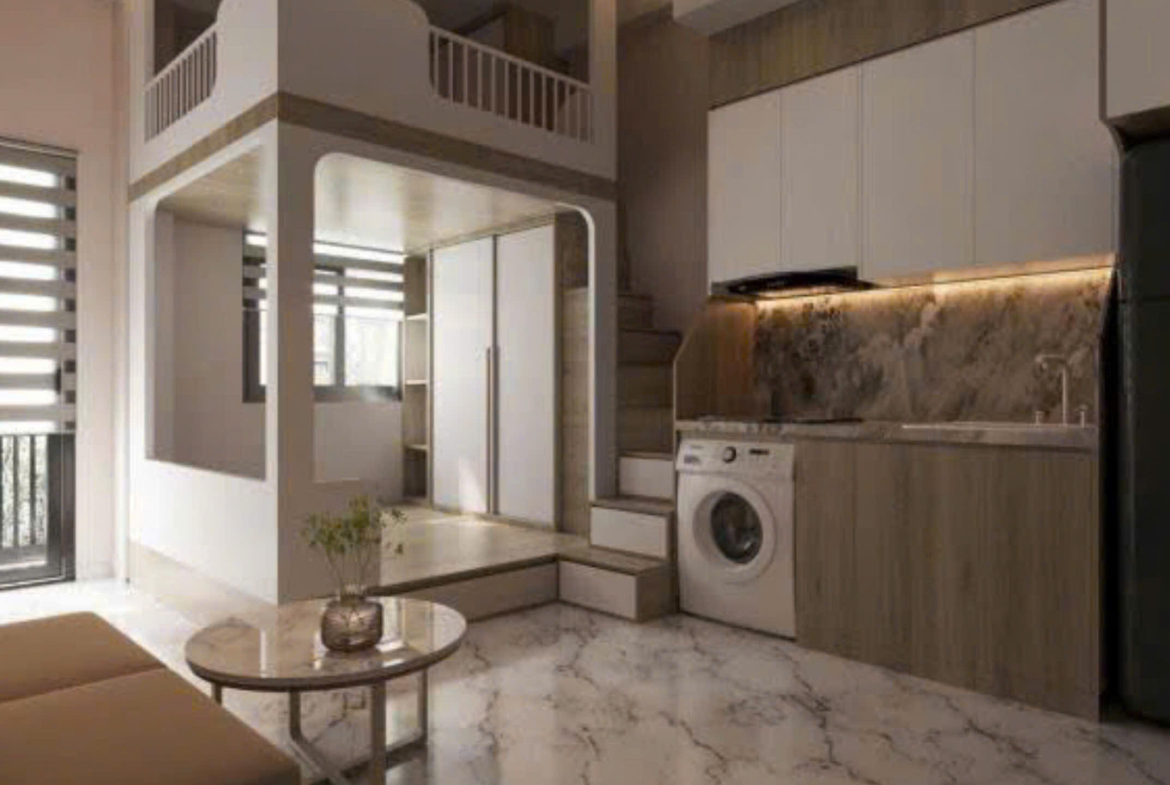 Máy giặt riêng, Camera 24/7, Giường tủ, Điều Hòa, tủ lạnh, tủ bếp hút mùi, nóng lạnh, bàn làm việc, sofa…