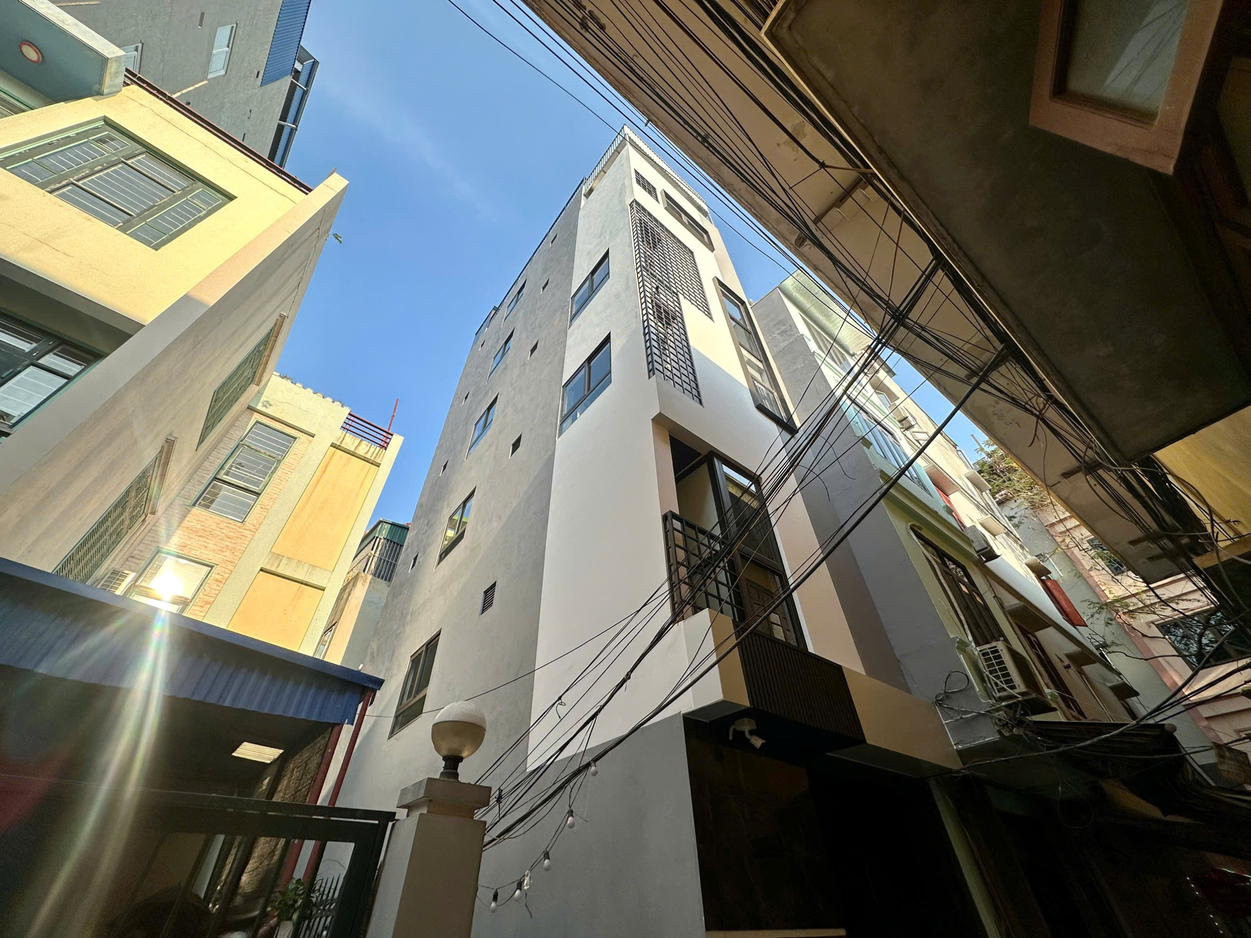 – Diện tích 38m2 trên sổ và 40m2 đo đạc xây dựng thực tế với mặt tiền 3,6m siêu rộng và đường trước nhà rộng 3,5m rất rộng rãi ô tô 4 chỗ có thể đỗ cửa. Nhà cao lô góc cao 6 tầng với tổng 5 căn hộ khép kín cao cấp chuẩn khách sạn 5 sao phòng nào cũng có cửa sổ và ban công thoáng sáng.