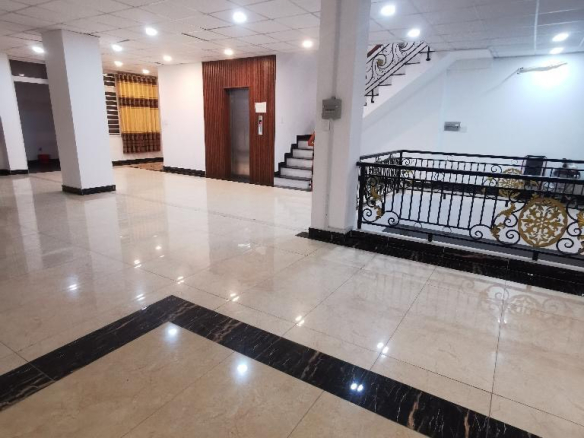 Nhà 1 Hầm 4 Lầu. Mỗi tầng trống suốt. Có thang máy.