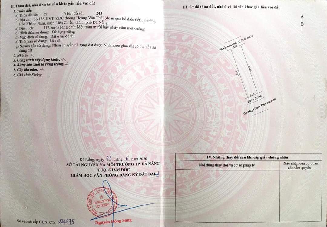 Tôi cần bán đất đường Phạm Thị Lam Anh, Hòa Khánh Nam – ĐN
