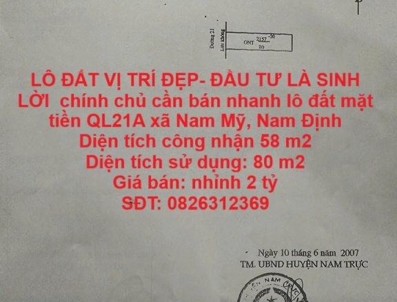 TÔI CHÍNH CHỦ Chuyển Vào Sài Gòn Sinh Sống Nên Cần Bán Nhanh Lô Đất Đẹp Tại Tỉnh Nam Định