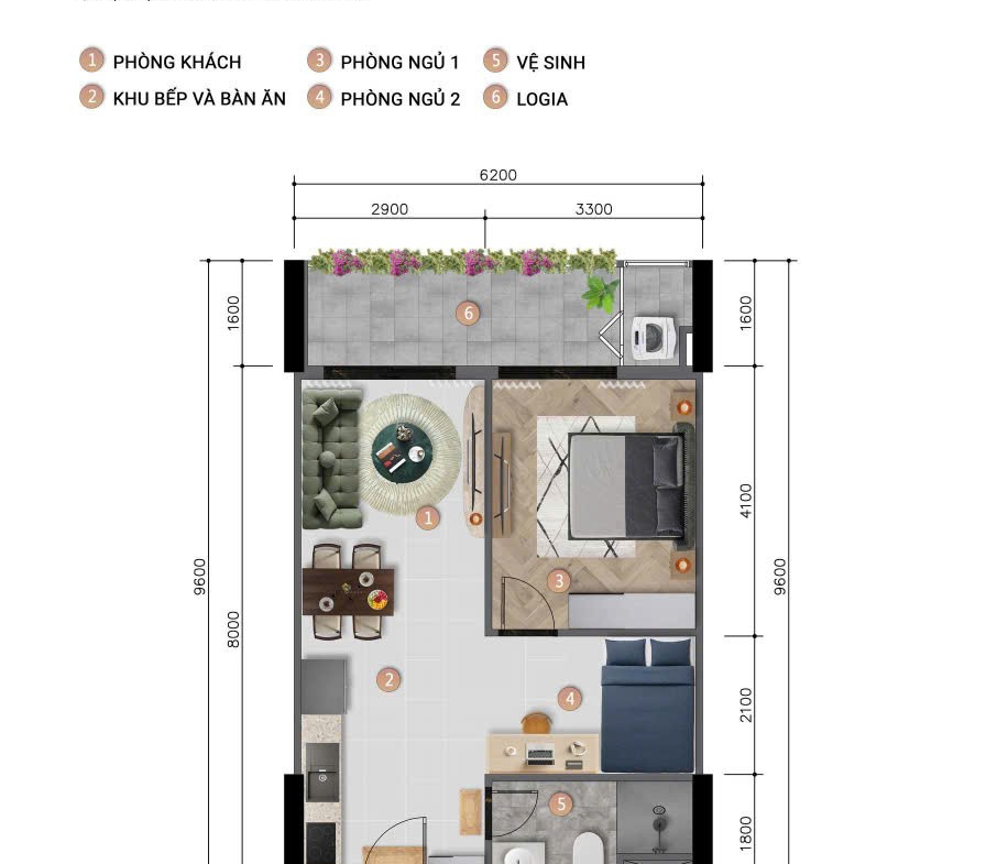 -Diện tích : 54m2