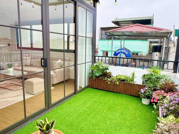 – 9 phòng khép kín + 1 căn hộ gia đình + sân thượng cực chill.