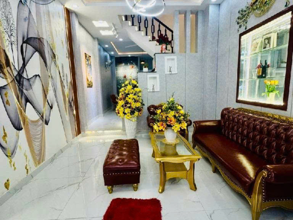 – Diện tích: 4 x 12m, nở hậu 4.1mKết cấu: trệt, 2 lầu, sân thượng. Nhà đẹp, 4 phòng ngủ, 5 wc, phòng khách, bếp, full nội thất.